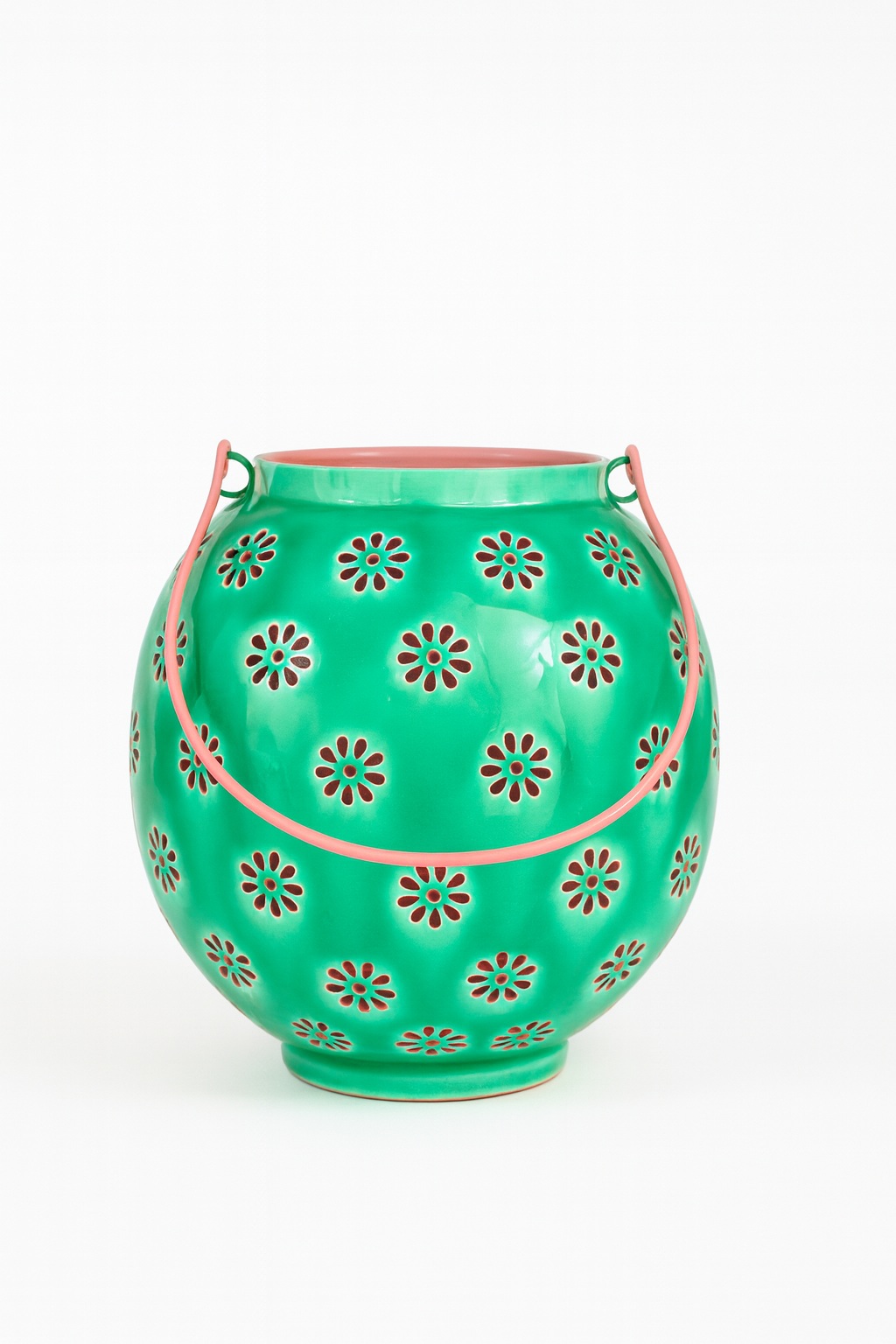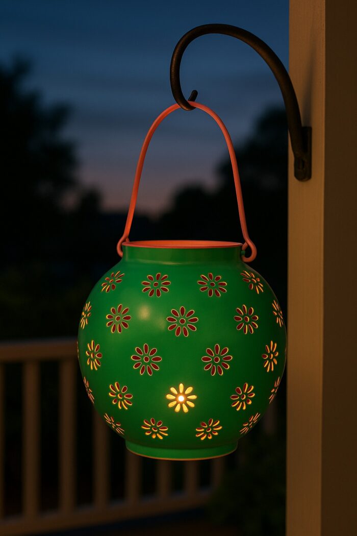 Green and Pink Round Geometric Flower Lantern – Medium