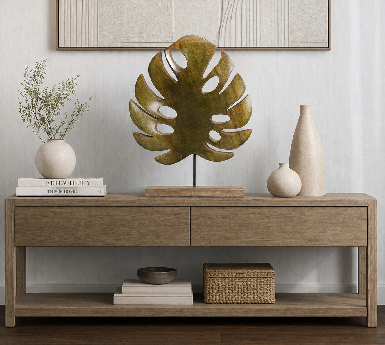 Whether styled on a side table, media console, or entryway shelf, these sculptural leaves bring balance and elegance to your interior with minimal effort. Ideal for modern, boho, or nature-inspired themes, this duo adds height and visual interest without overpowering your space.