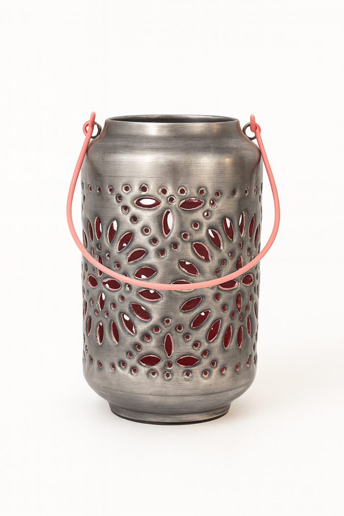 Home Decor Lantern Silver and Pink