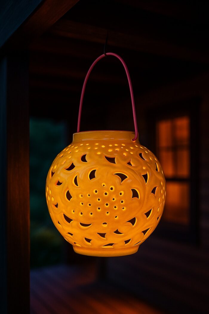 Yellow and Pink Round Geometric Flower Lantern – Medium